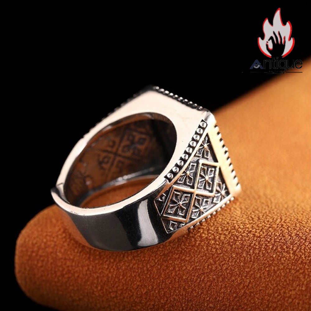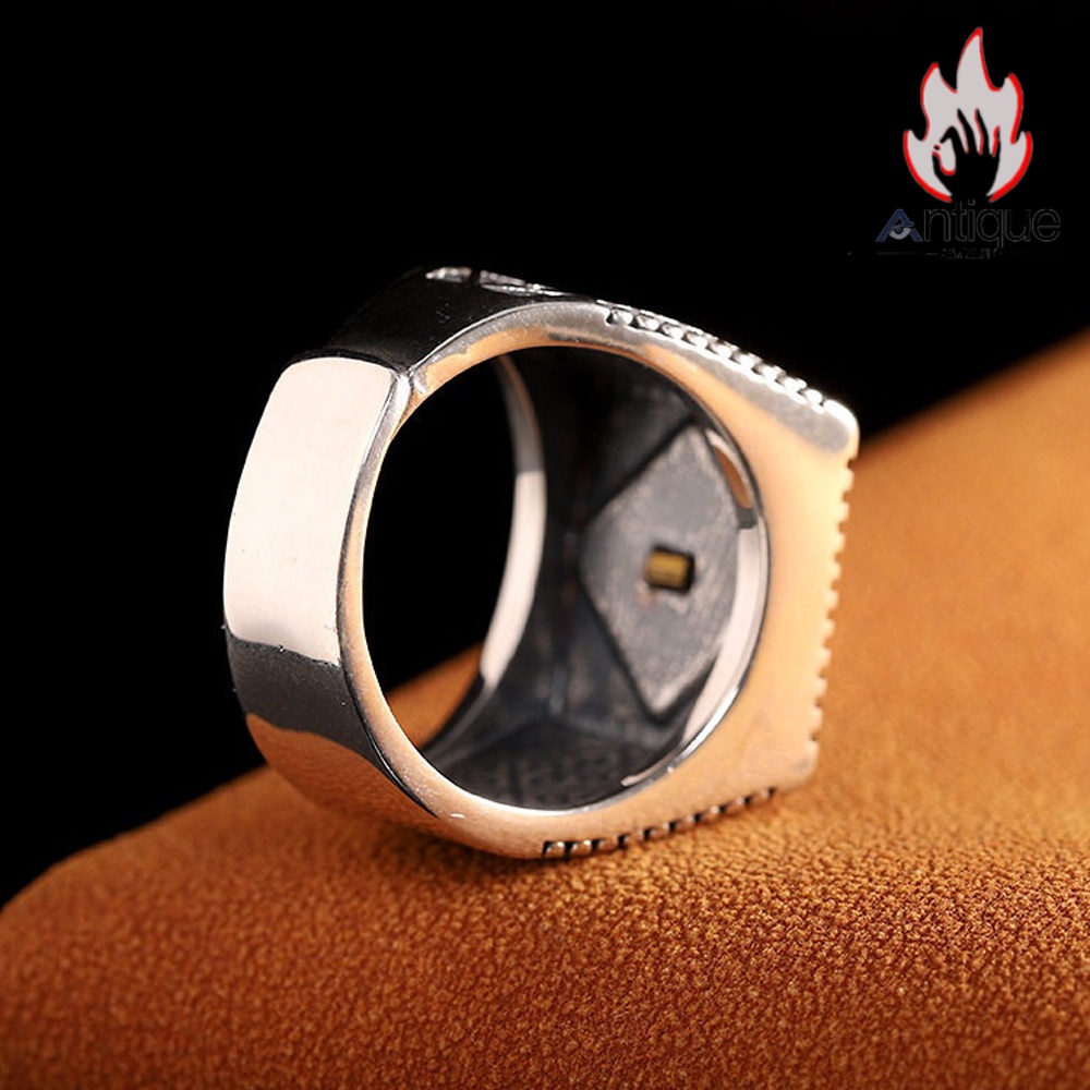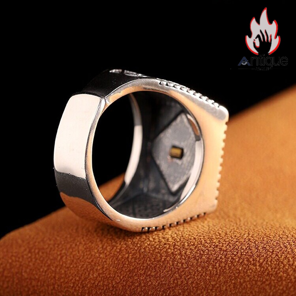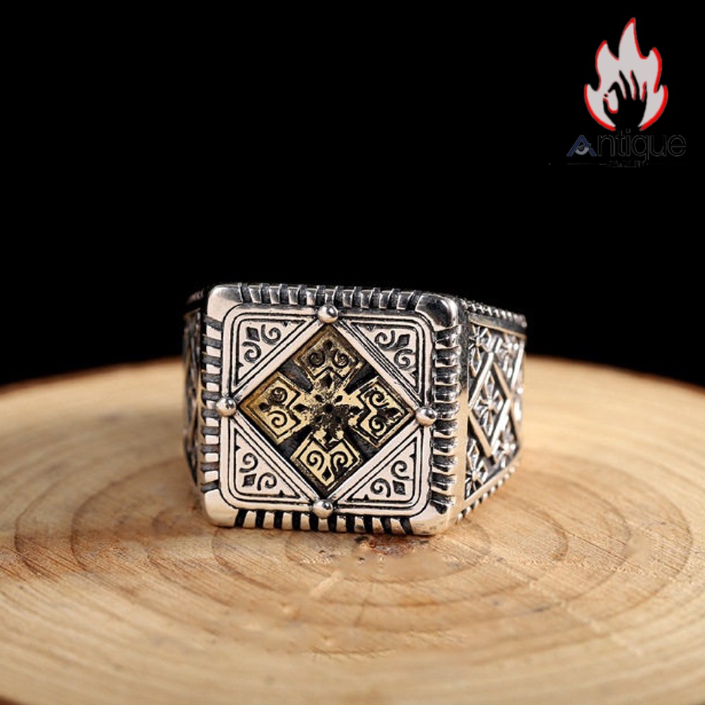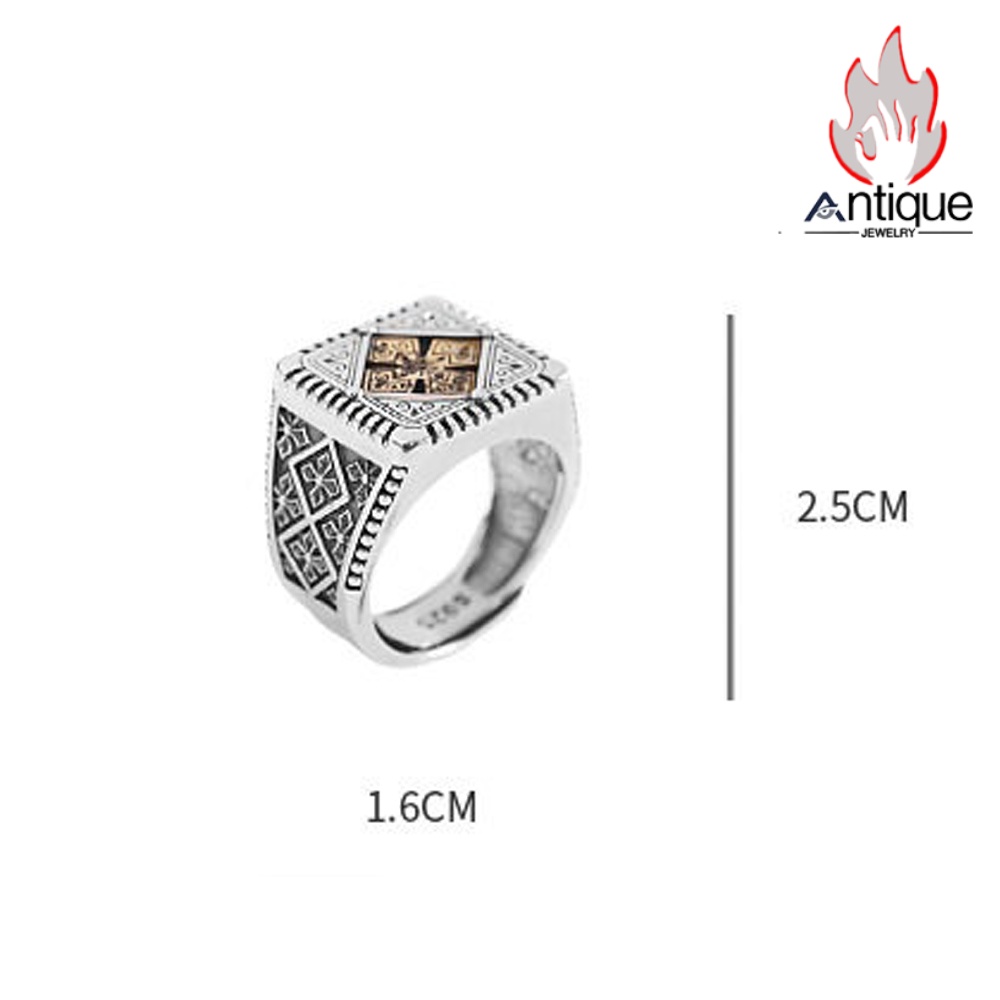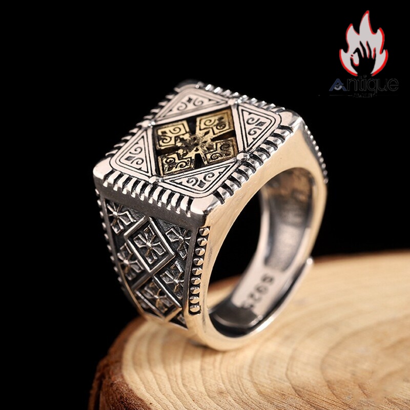 Antique Jewelry S925 シルバー 十字軍クロス 花柄リング インデックス指輪 パンクレトロ メンズ サイズ調整可能