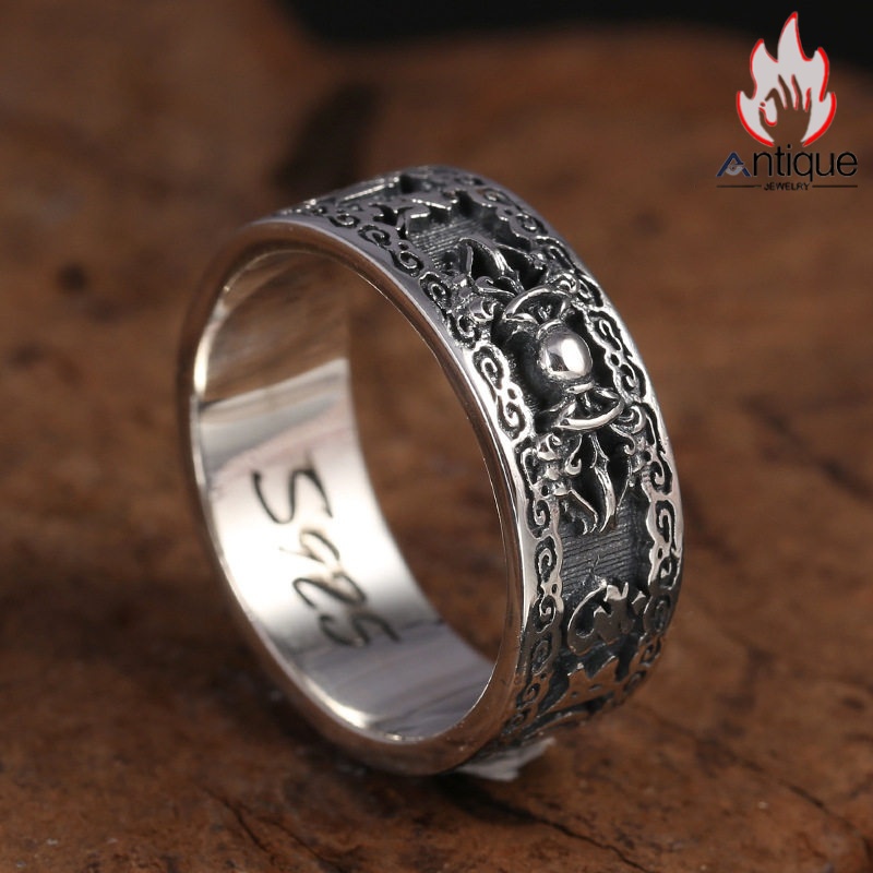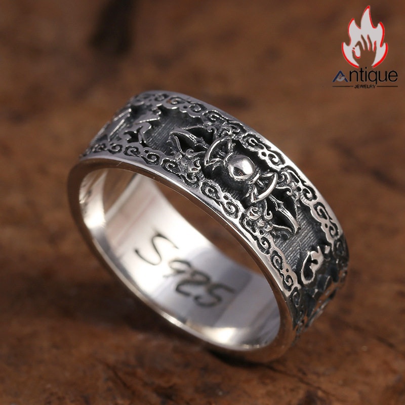 Antique Jewelry S925 シルバー 個性的 金剛杵・卍字デザインリング メンズ 六字真言 ヴィンテージ調リング