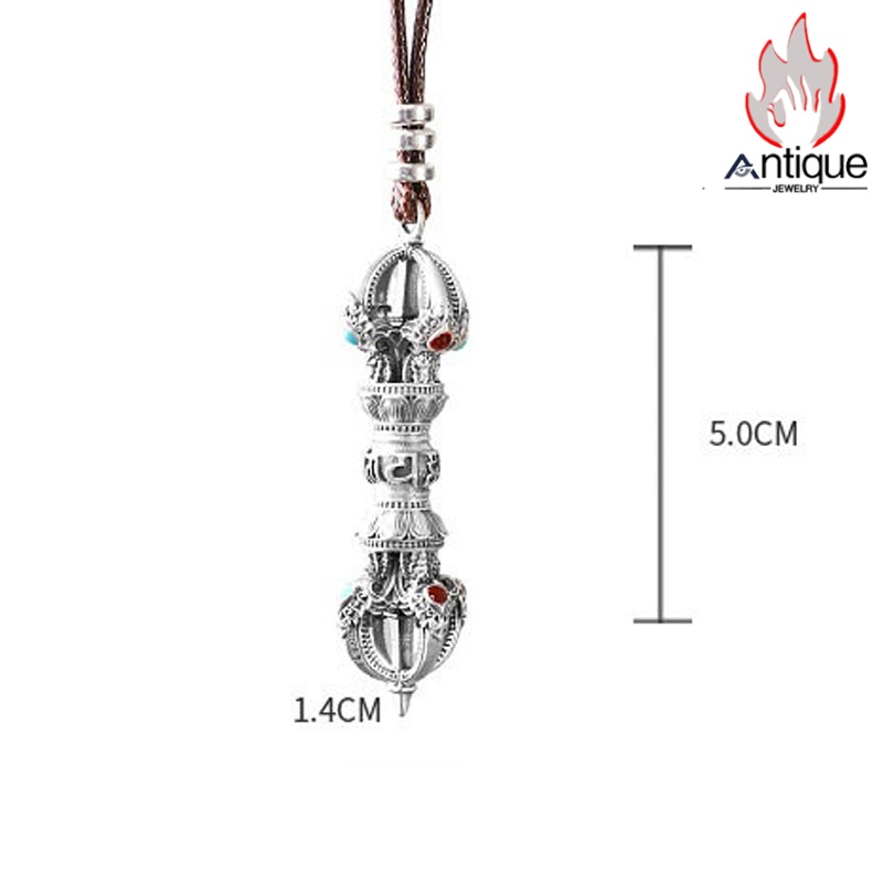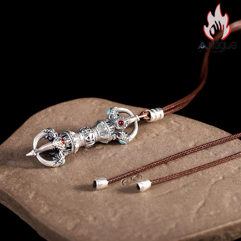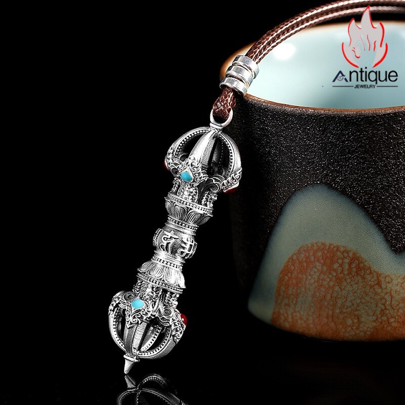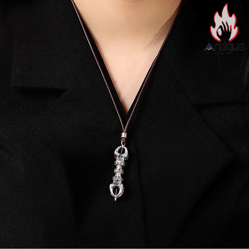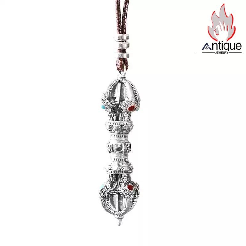 Antique Jewelry S999 シルバー 金剛杵ペンダントネックレス 精巧彫刻 ヴィンテージ風 降魔杵デザイン メンズ個性アクセサリー
