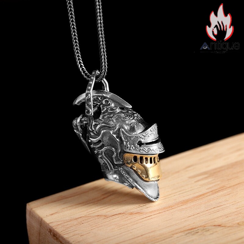 Antique Jewelry S925 シルバー 中世ヨーロッパ兜ペンダントネックレス メンズ ドクロヴィンテージ スチームパンクデザイン