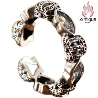 Antique Jewelry ヴィンテージシルバージュエリー 男性用のアイオブラ宝石の指輪 欧米風 アルルビノ 全視の目 開口リング