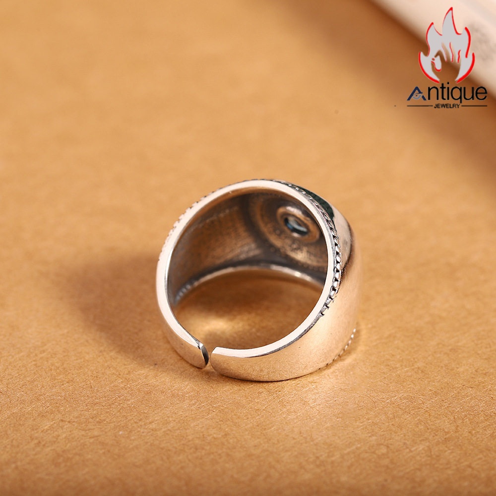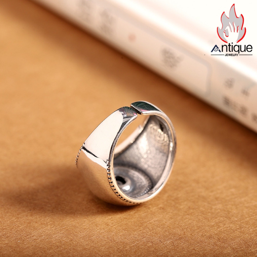 Antique Jewelry S925 シルバー 悪魔の瞳 光沢リング オープンバンド ヴィンテージ メンズ シンプル プレゼント