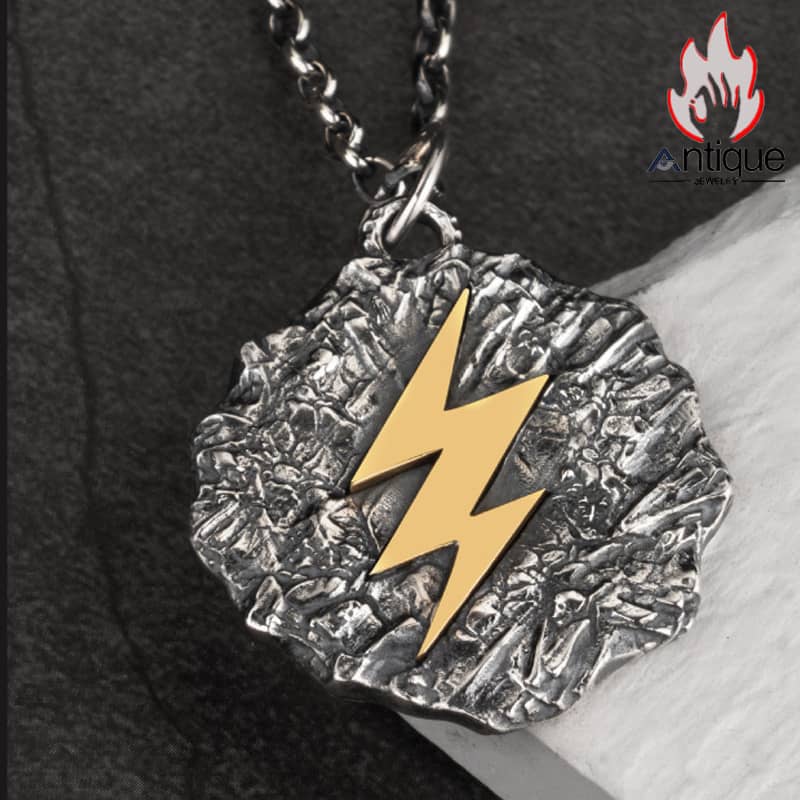 Antique Jewelry 「宙斯の怒り」雷光シルバーネックレス ヴィンテージシルバーアクセサリー 男女兼用 刻印可能