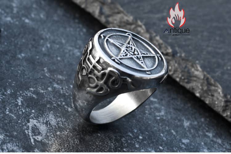 Antique Jewelry 五芒星の悪魔スカルリング 男性用 欧米風の個性的なチタンステンレススチール製指輪、恶魔撒旦のスタイルを表現するアクセサリー に興味を持って頂きありがとうございます