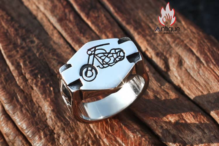 Antique Jewelry スカルバイクリング 男性用 ヒップホップ風個性的なオートバイ指輪、チタンステンレススチール製、欧米風鬼ヘッドモーターサイクルアクセサリー に興味を持って頂きありがとうございます