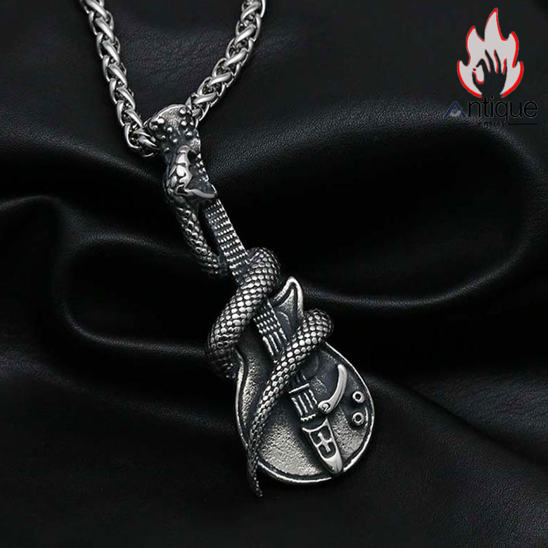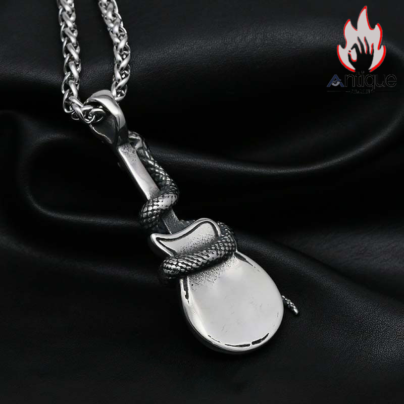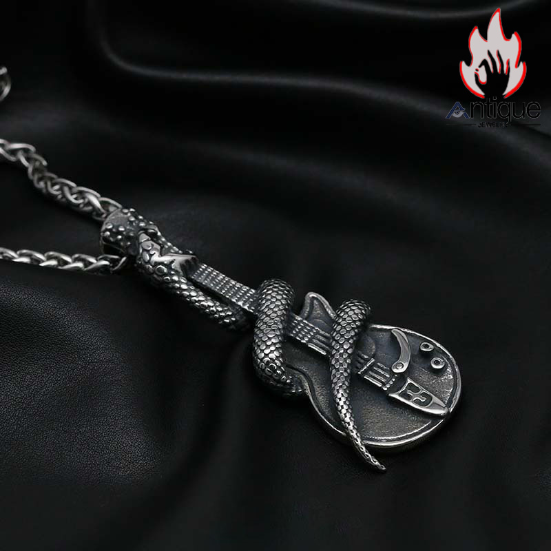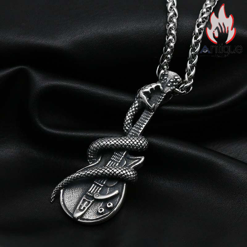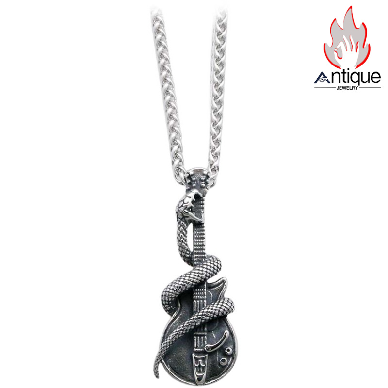 Antique Jewelry オリジナル 蛇 ベスエレキギター ネックレス ロック チタン鋼 ダーク ヒップホップ ペンダント レトロなアクセサリー