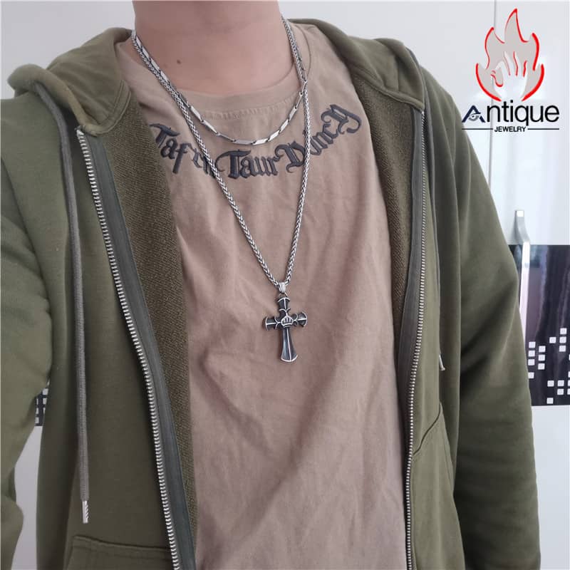 Antique Jewelry ゴシックスタイル 十字架ネックレス 男性用の個性的なチタンスチール製パンクな欧米風王冠ペンダント ヴィンテージ風 に興味を持って頂きありがとうございます