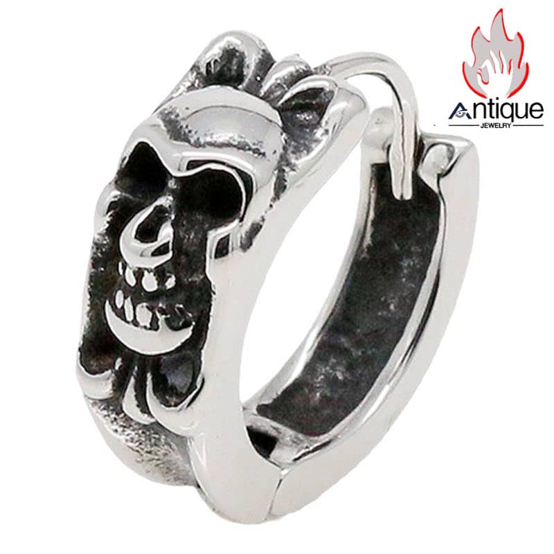Antique Jewelry オリジナル ヒップホップスタイルのゴーストフェイスイヤリング 男性用のチタンスチール製パンクなヴィンテージ風個性的なスカルヘッドイヤリング 欧米風 に興味を持って頂きありがとうございます