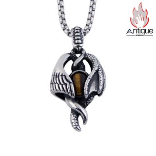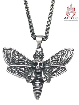 Antique Jewelry ダークロックベースネックレス、ヴィンテージパンクメンズチタンスチールパーソナルスカルヘッドエレキギターペンダント