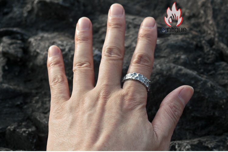 Antique Jewelry S925銀 ハンマーテクスチャーバンド 男女兼用 ハンドメイド 個性的な指輪 ヴィンテージ スタイル フィンガーリング 調節可能なオープンリング に興味を持って頂きありがとうございます