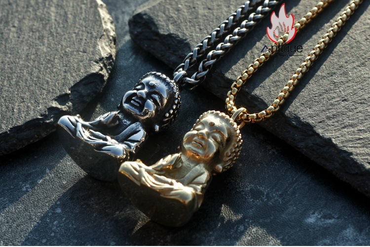 Antique Jewelry ヴィンテージ シャカムニ小仏像ネックレス 個性的な大日如来チタン鋼ペンダント
