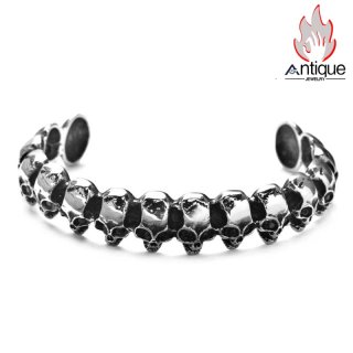 Antique Jewelry インディアンスカルモチーフ 開口式メンズブレスレット 欧米風ヒップホップ レトロ個性派 チタンスチール製