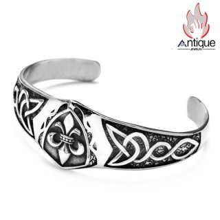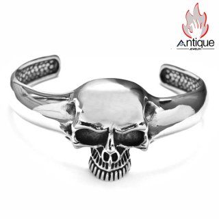 Antique Jewelry インディアン スカルブレスレット メンズ 調整可能なオープンデザイン 欧風 チタン鋼バングル ヴィンテージアクセサリー